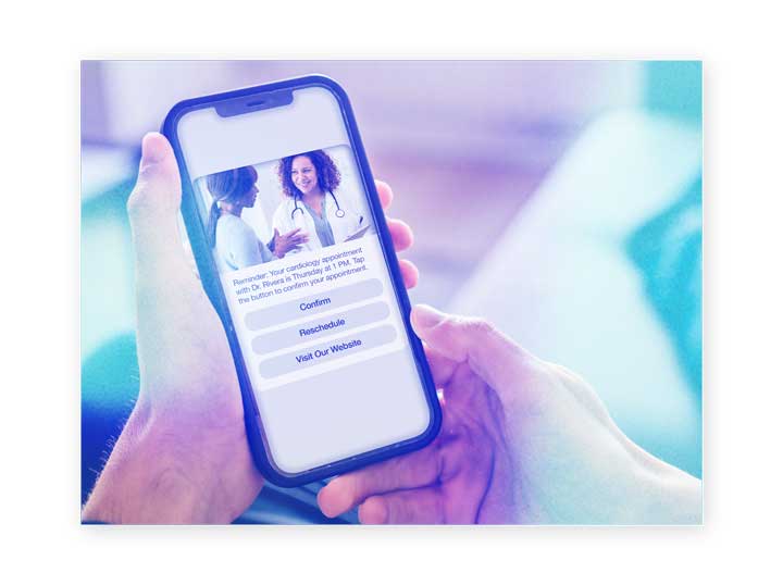 Move beyond standard SMS with secure, branded messages patients trust and act on. From appointment confirmations to self-service options, RCS streamlines workflows, reduces staff burden, and delivers measurable results.