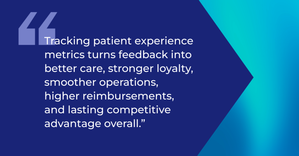 - Operational Efficiency: Patient experience metrics reveal problems that you can immediately fix to make your operations run smoother.